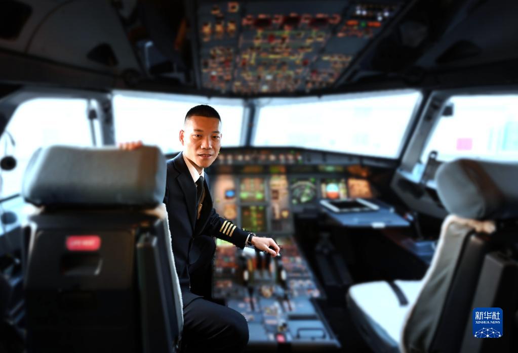 馬保利在飛機駕駛艙內(2月4日攝)(駕駛艙進(jìn)行了虛化處理)。