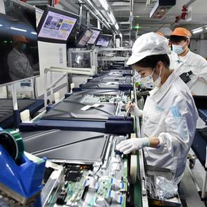 2月9日,海信視像科技股份有限公司黃島基地,工人加緊趕制外貿訂單。