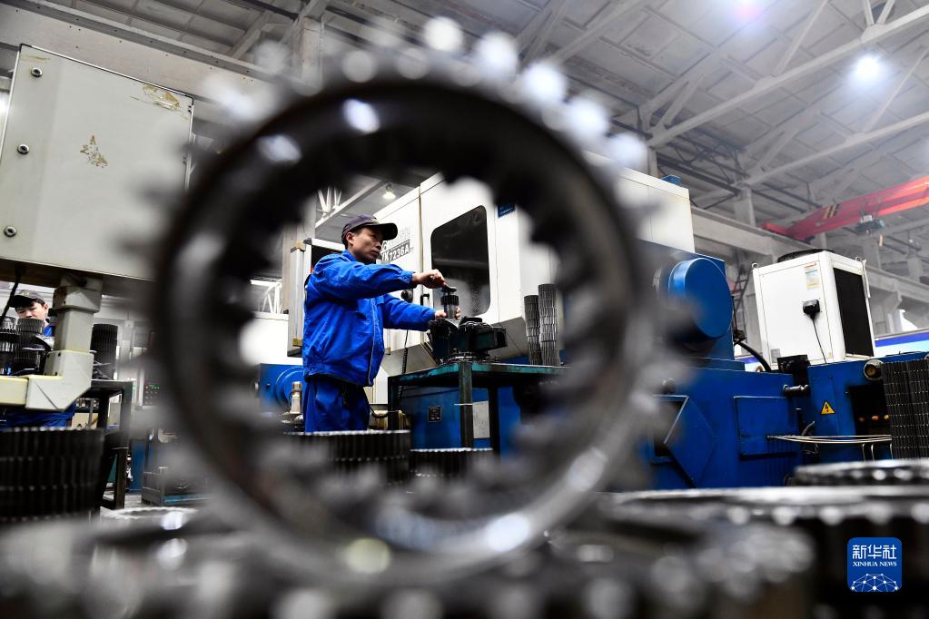2月10日,一企業(yè)工作人員在加工變速箱齒輪。