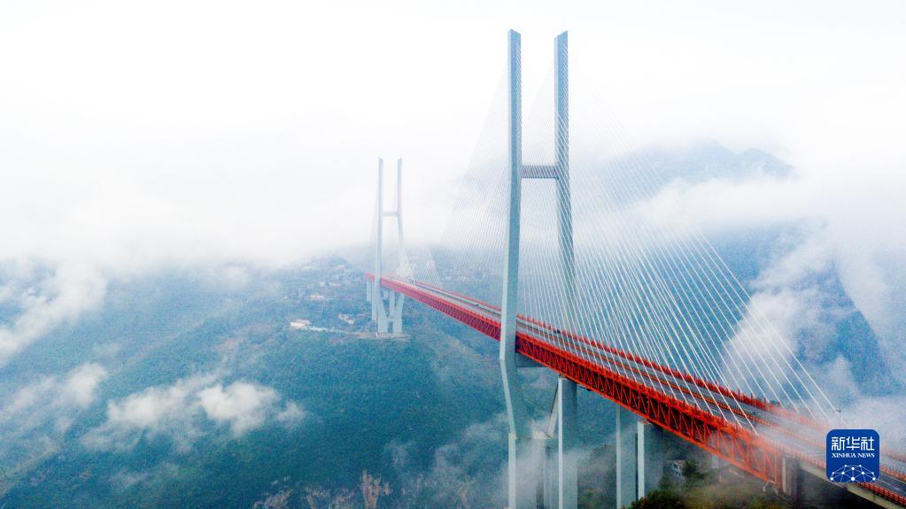2021年11月28日拍攝的貴州北盤(pán)江大橋(無(wú)人機照片)。