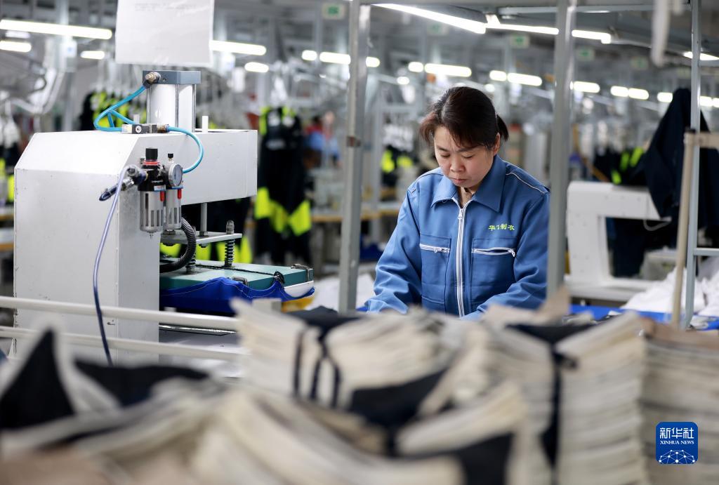 工人在河北內丘一家制衣企業(yè)生產(chǎn)車(chē)間工作(2月9日攝)。