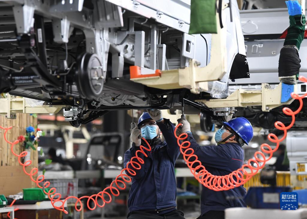 2月10日,工人在河北定州長(cháng)安汽車(chē)有限公司車(chē)輛生產(chǎn)線(xiàn)上工作。