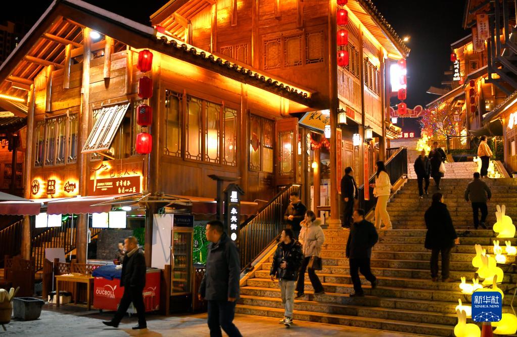 2月9日,游客在宣恩縣興隆老街賞景游玩。