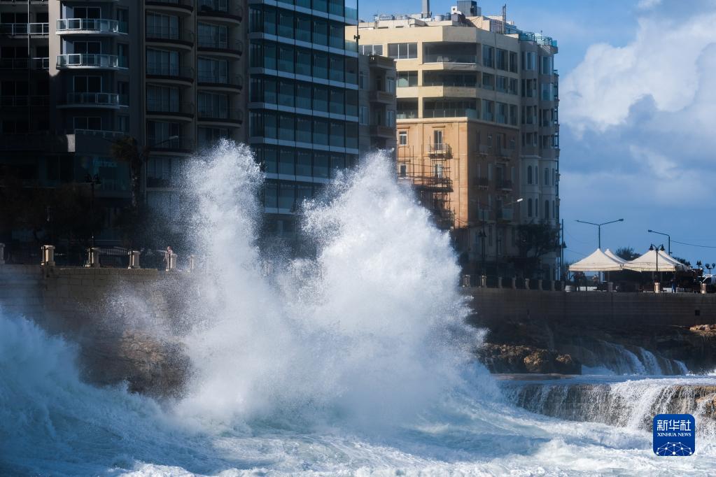 2月10日,在馬耳他斯利馬,大浪拍打海岸。