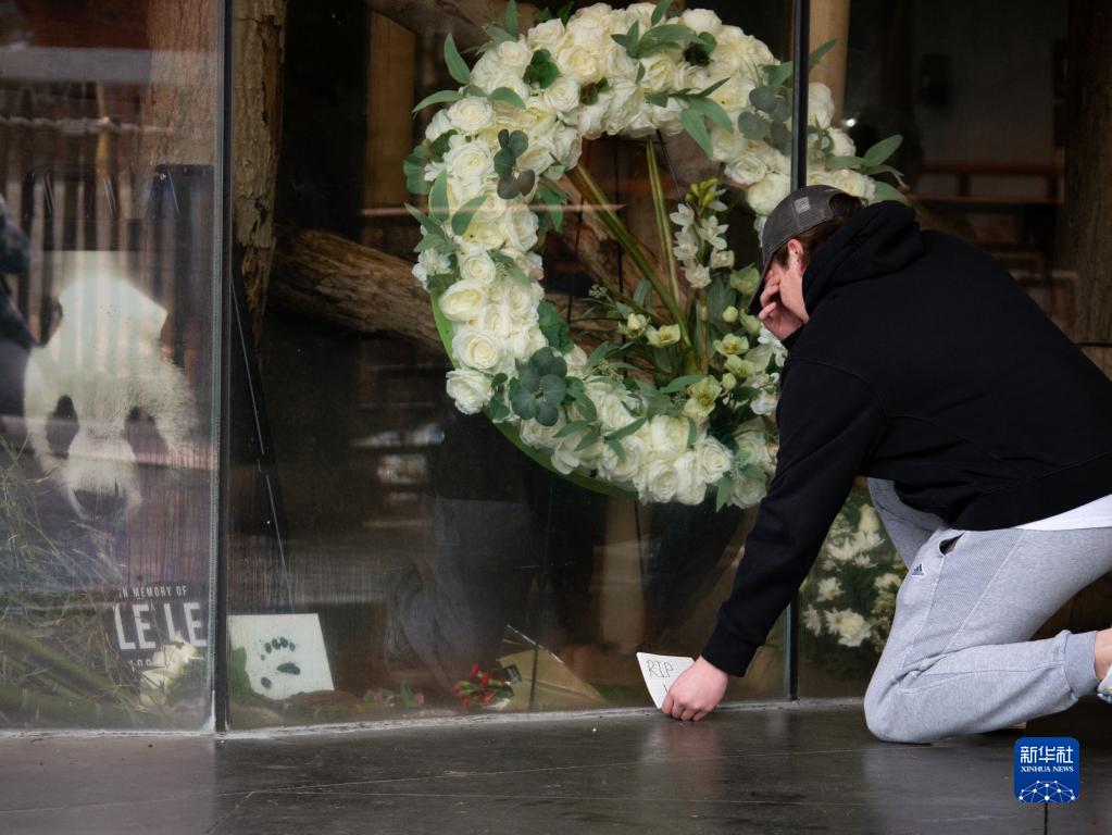 2月4日,在美國田納西州孟菲斯動(dòng)物園,市民在大熊貓“樂(lè )樂(lè )”的照片前悼念。