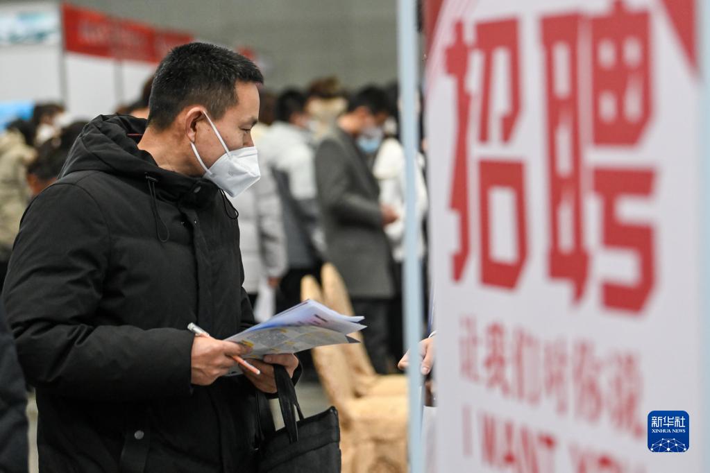 2月11日,在新疆國際會(huì )展中心舉行的2023新疆春季人才交流會(huì )上,求職者了解崗位信息。