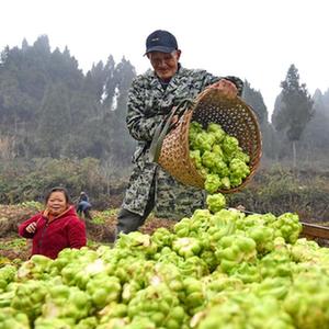 2月10日,南充市嘉陵區安福鎮埡子口村的村民在收獲青菜頭。
