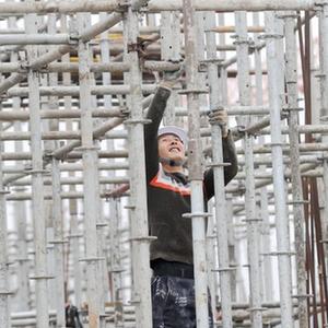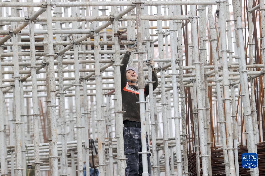 2月11日,工人在浙江省湖州市德清縣康乾街道莫干山智能生態(tài)城創(chuàng )新創(chuàng )業(yè)產(chǎn)業(yè)園項目工地施工。