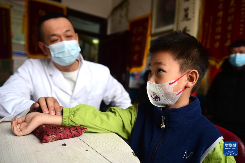 2月11日,滄州市新華區道東街道鞠官屯社區衛生服務(wù)站的中醫為患者把脈。