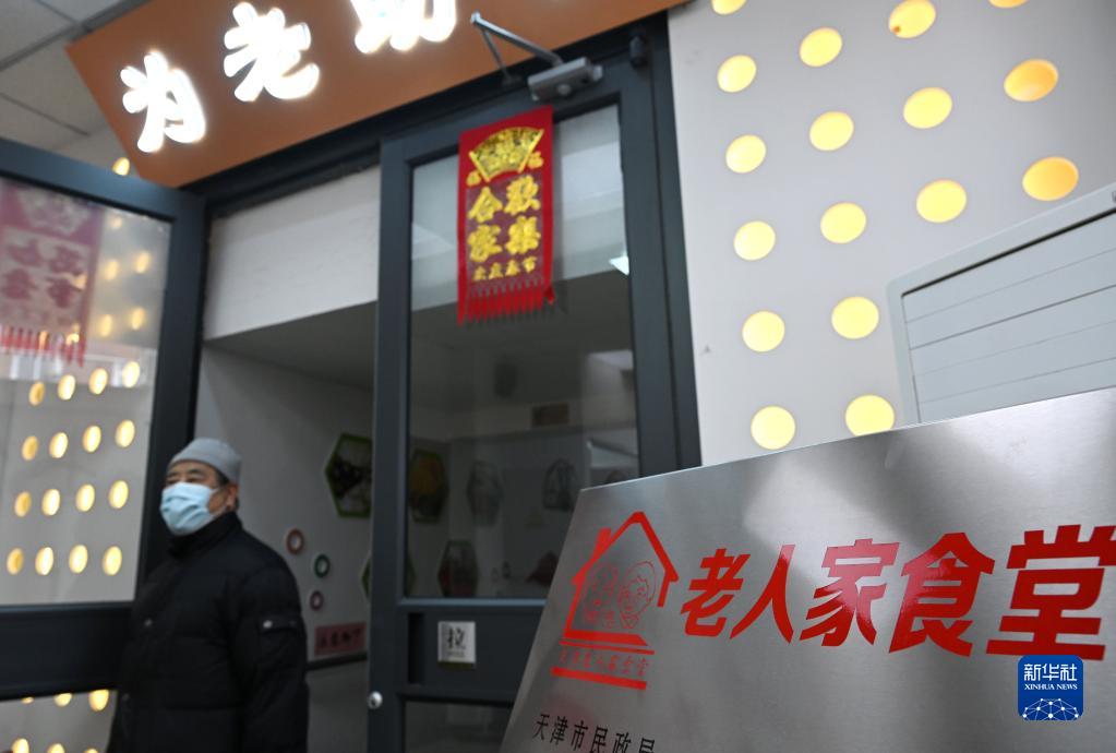 老人用餐完畢走出天津市和平區南營(yíng)門(mén)街道老年人“智慧食堂”(2月10日攝)。