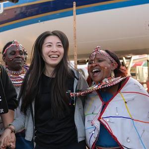 2月11日,在肯尼亞首都內羅畢喬莫·肯雅塔國際機場(chǎng),中國游客和肯尼亞演員互動(dòng)。