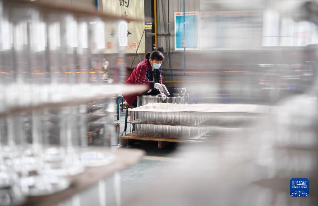 2月11日,河北省河間市一家工藝玻璃制品生產(chǎn)企業(yè)工人在車(chē)間內整理產(chǎn)品。