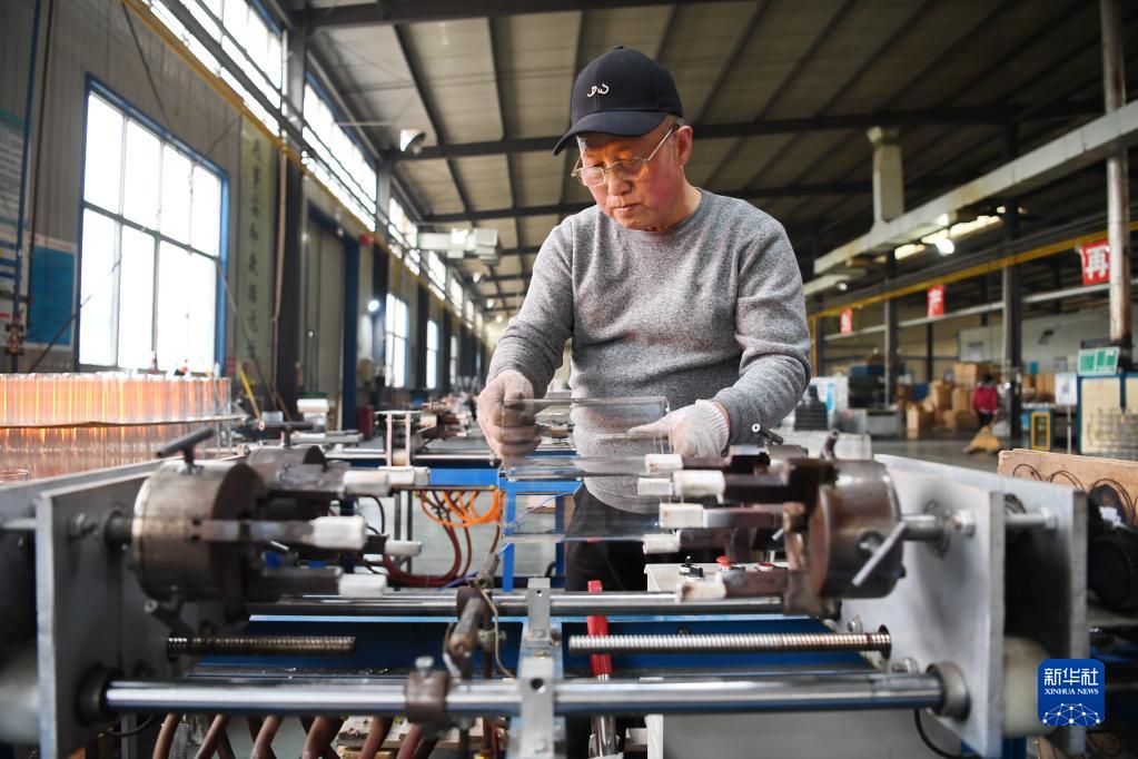 2月11日,河北省河間市一家工藝玻璃制品生產(chǎn)企業(yè)工人在車(chē)間內加工產(chǎn)品。