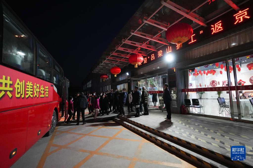 北京市“點(diǎn)對點(diǎn)”返崗復工專(zhuān)車(chē)從山西省呂梁市抵達北京市今日東方家政服務(wù)公司,薛四四就乘坐這趟班車(chē)抵達北京(2月4日攝)。