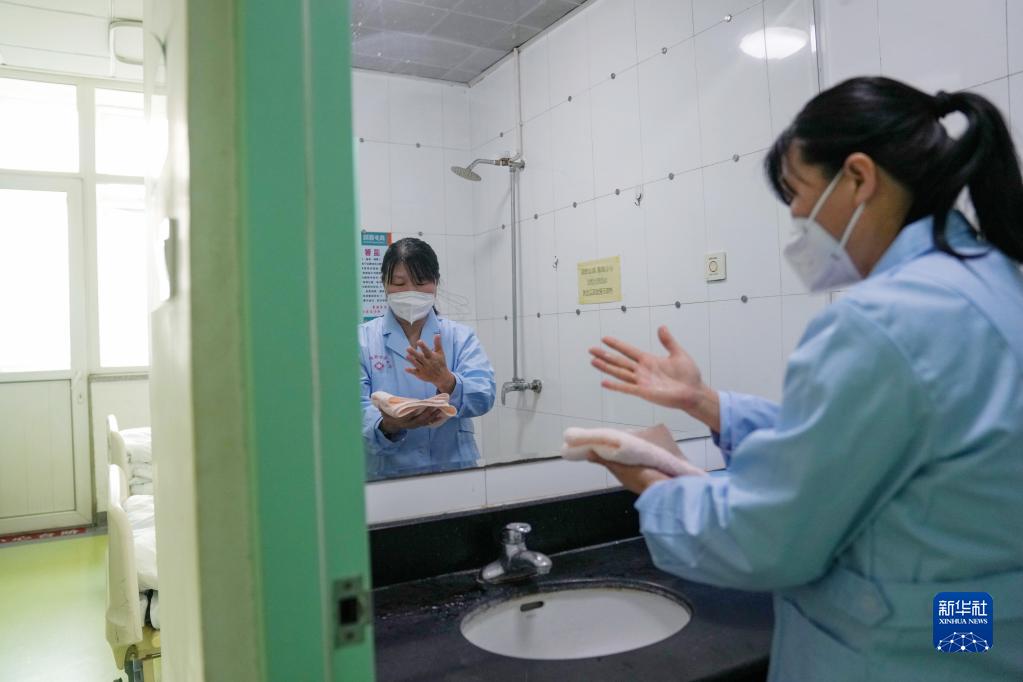在北京市房山區良鄉醫院神經(jīng)內科三病區,薛四四第一天上崗(2月10日攝)。