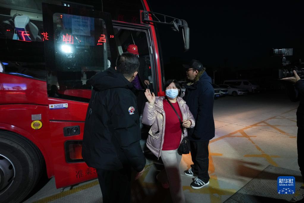 薛四四(中)乘坐北京市“點(diǎn)對點(diǎn)”返崗復工專(zhuān)車(chē)從山西省呂梁市抵達北京市今日東方家政服務(wù)公司(2月4日攝)。