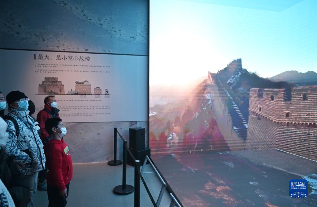 2月12日,觀(guān)眾在展覽上觀(guān)看講解長(cháng)城的視頻。