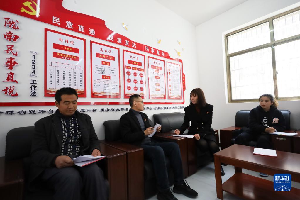 在隴南市武都區蒲池鄉咀臺上村,“民事直說(shuō)委員會(huì )”成員商議群眾反映的訴求(2月9日攝)。