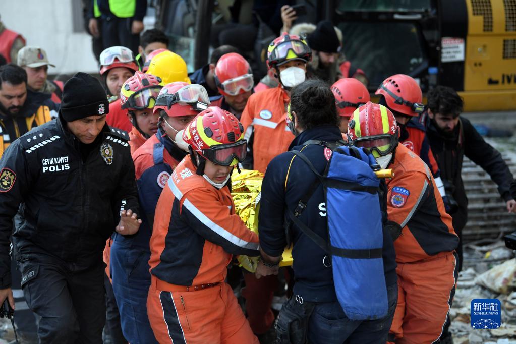 當地時(shí)間12日下午,正在土耳其哈塔伊省安塔基亞市實(shí)施搜救的中國救援隊營(yíng)救出一名幸存者。