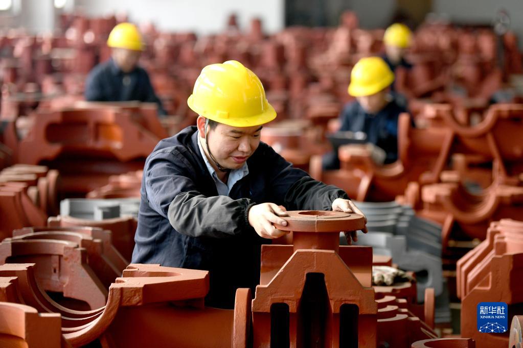 2月13日,工人在福建福州閩侯縣的毅飛泵業(yè)(福州) 有限公司生產(chǎn)線(xiàn)上組裝水泵部件。