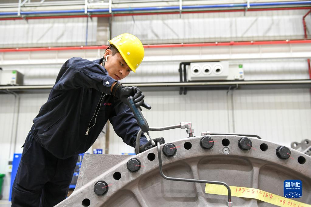 2月13日,工人在南高齒(包頭)傳動(dòng)設備有限公司生產(chǎn)車(chē)間內作業(yè)。