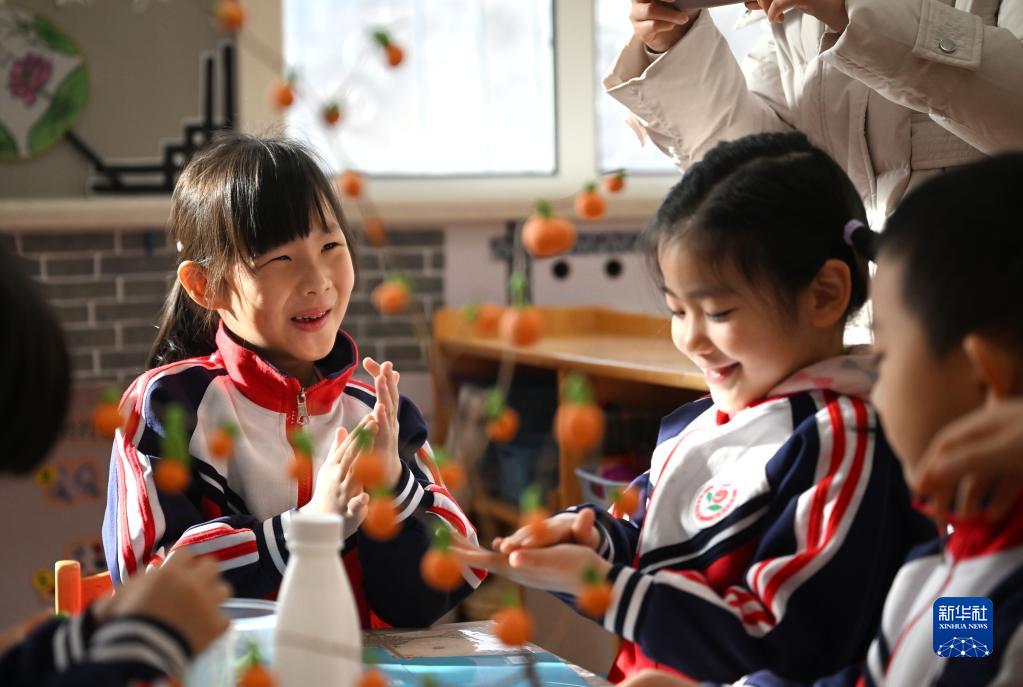2月13日,天津市和平區第五幼兒園的小朋友在學(xué)習手工制作。