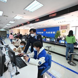2月13日,在福州市閩清縣辦稅服務(wù)大廳,工作人員向企業(yè)工作人員介紹稅惠政策。