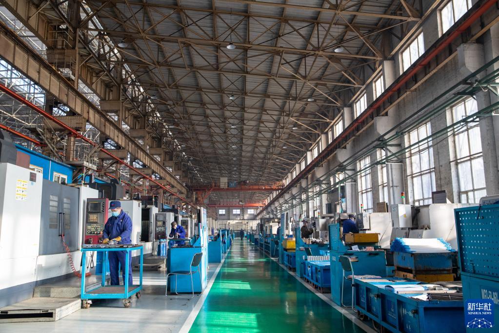 2月13日,工作人員在哈電集團哈爾濱電機廠(chǎng)有限責任公司數控加工中心車(chē)間內進(jìn)行作業(yè)。新華社記者 張濤 攝