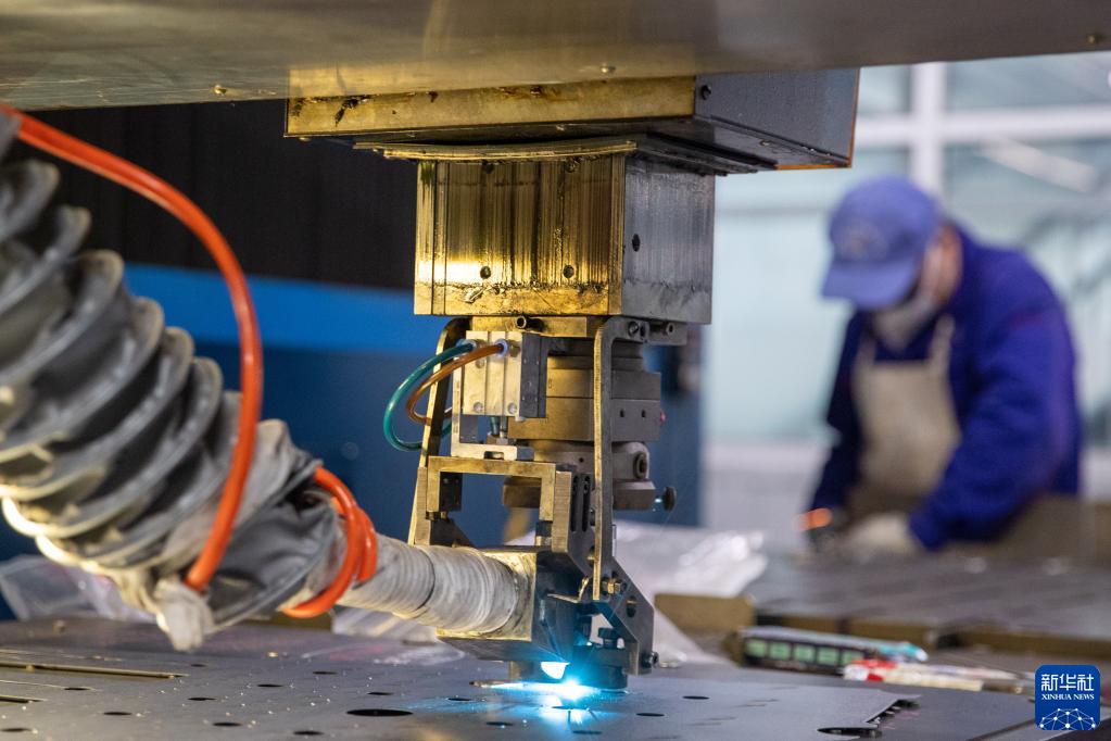 2月13日,在哈電集團哈爾濱電機廠(chǎng)有限責任公司生產(chǎn)車(chē)間,激光自動(dòng)點(diǎn)焊機在作業(yè)中。新華社記者 張濤 攝