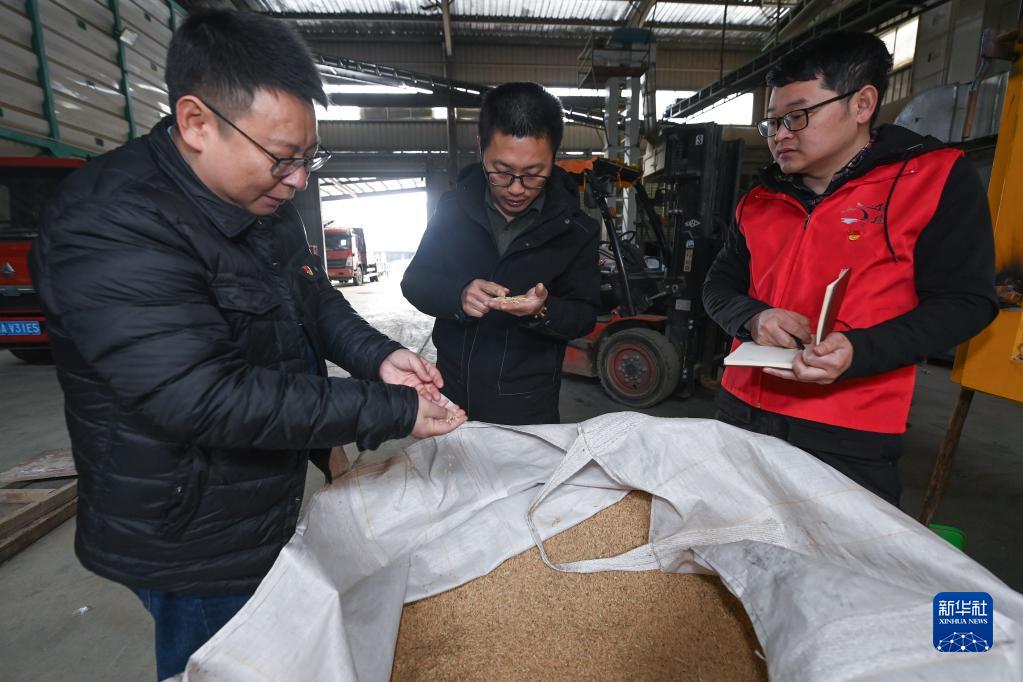 2月14日,杭州市臨安區板橋鎮農技專(zhuān)家俞?。ㄗ螅┲笇Х掂l創(chuàng )業(yè)青年包洪軍(中)如何育種。包洪軍大學(xué)畢業(yè)后回鄉承包了1000多畝農田,使用完善的機械作業(yè)、無(wú)人機植保等現代農業(yè)技術(shù),打造現代化糧倉。