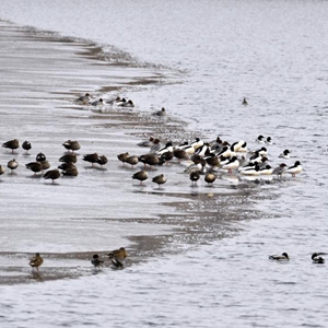 各種鳥(niǎo)類(lèi)在北京園博湖棲息(2月14日攝)。