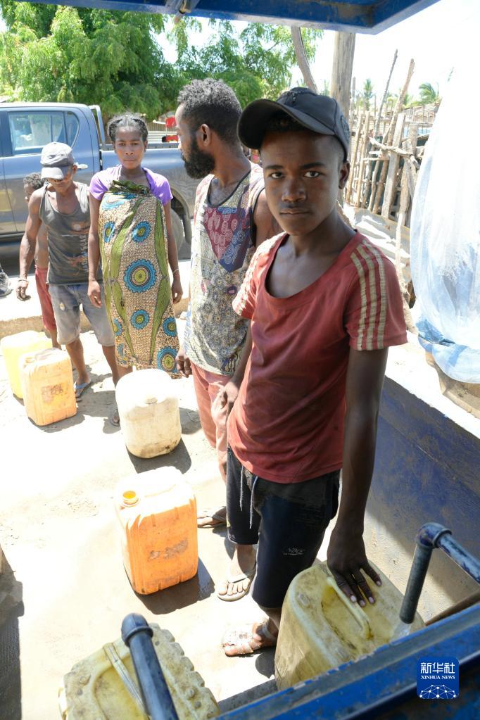 2022年12月8日,在馬達加斯加西南部沿海城市圖利亞拉,當地人在集中供水房前打水。新華社記者 凌馨 攝