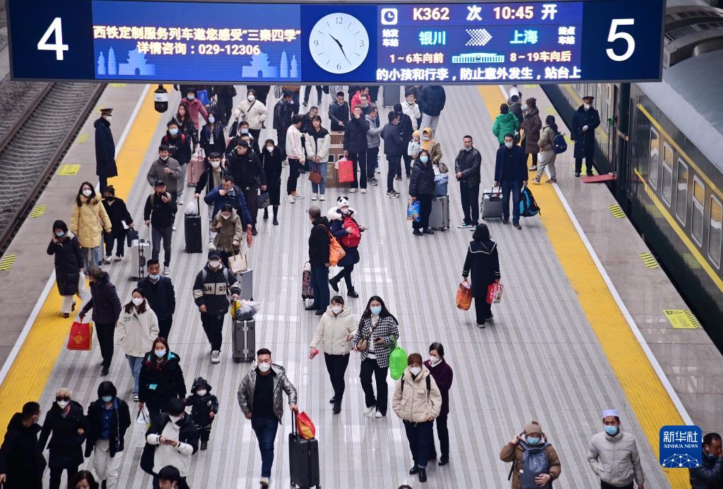 2月15日,乘坐K362次列車(chē)的旅客抵達西安站。