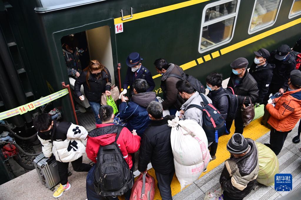 2月15日,旅客在西安站進(jìn)站乘車(chē)。