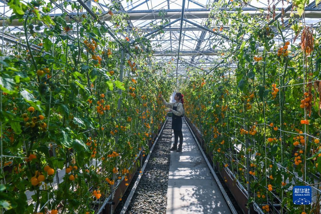 2月15日,在浙江省嘉興市南湖區鳳橋鎮一個(gè)有機農業(yè)園的大棚內,工作人員在采摘立體栽培的小番茄。該農業(yè)園配備數字化智慧農業(yè)系統,引進(jìn)農業(yè)機器人進(jìn)行施肥、澆水、翻耕、播種、植保等農事工作。