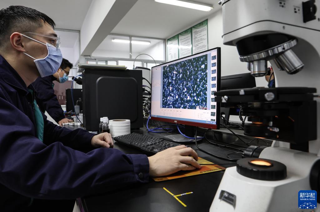 常州第六元素材料科技股份有限公司的技術(shù)人員檢測石墨烯原料(2月14日攝)。