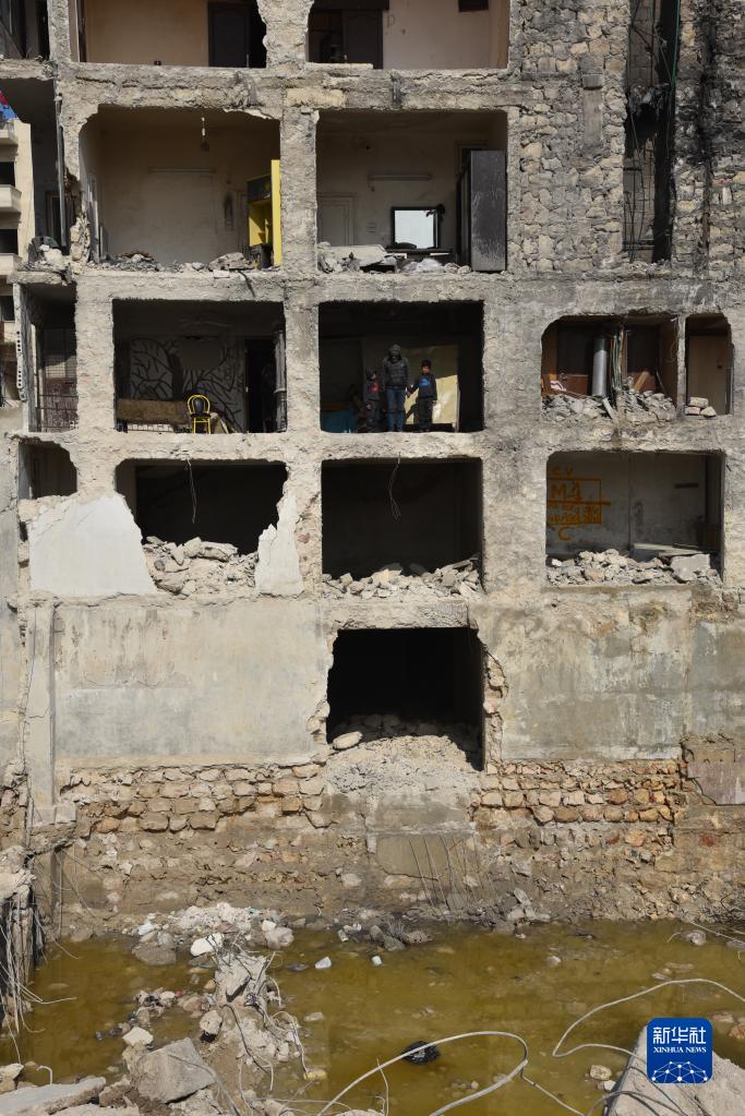 這是2月13日在敘利亞阿勒頗拍攝的地震中受損的建筑。
