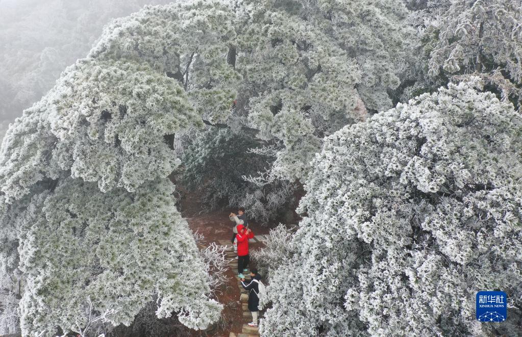 2月15日,游客在湖南省衡陽(yáng)市南岳衡山風(fēng)景區游玩賞雪(無(wú)人機照片)。