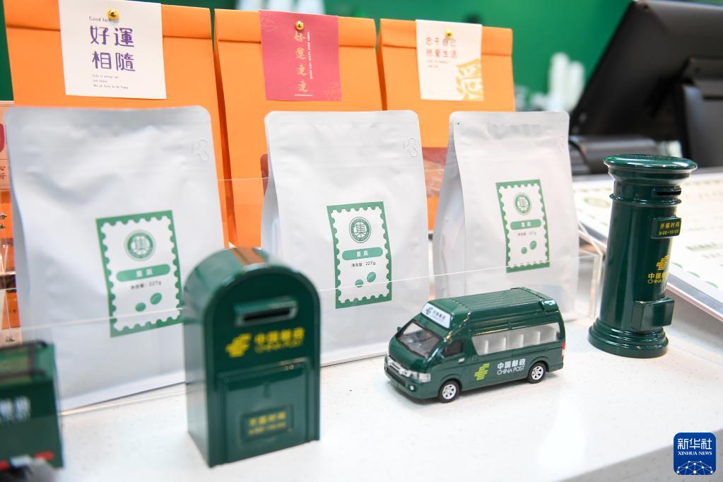 2月15日在深圳咖啡主題郵局拍攝的咖啡豆和文創(chuàng )產(chǎn)品。