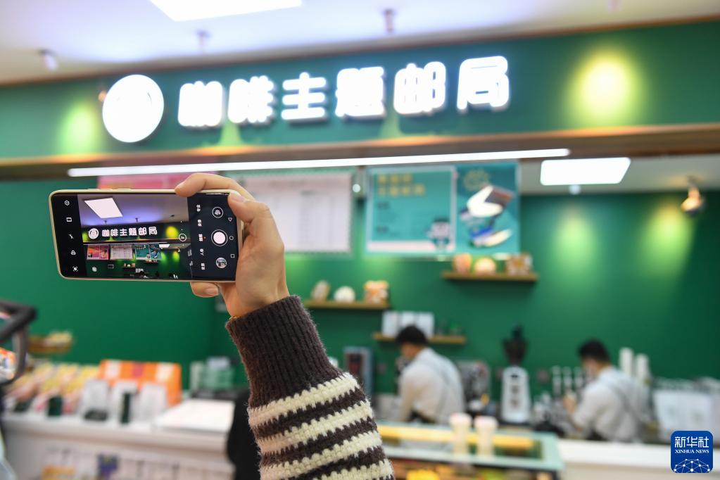 2月15日,顧客在深圳咖啡主題郵局打卡拍照。