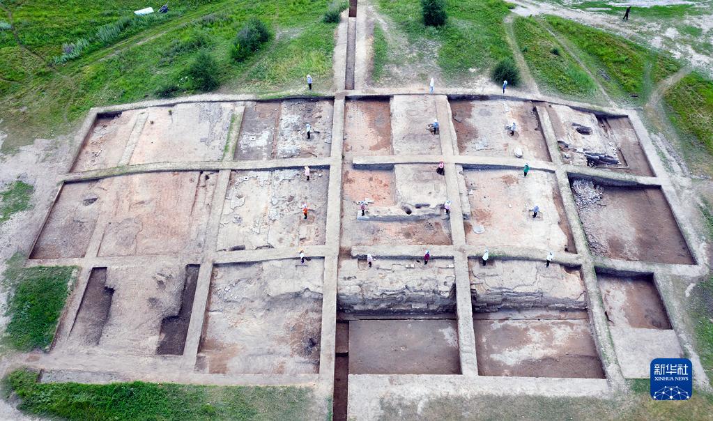 內蒙古巴林左旗遼上京皇城遺址南部一號建筑基址發(fā)掘后全景(資料照片)。