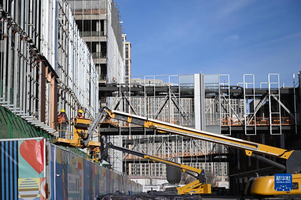 2月14日,工人在位于天津市和平區金街商圈的印象城項目現場(chǎng)施工。
