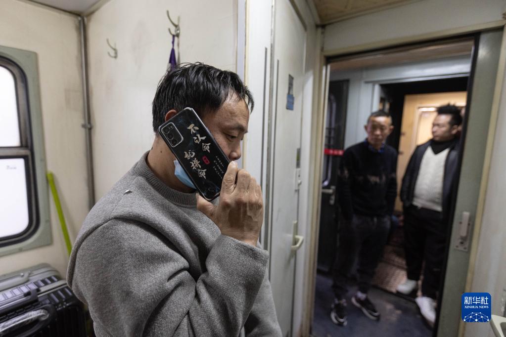 2月14日,在臨客K4618次列車(chē)上,一名乘客在打電話(huà)。