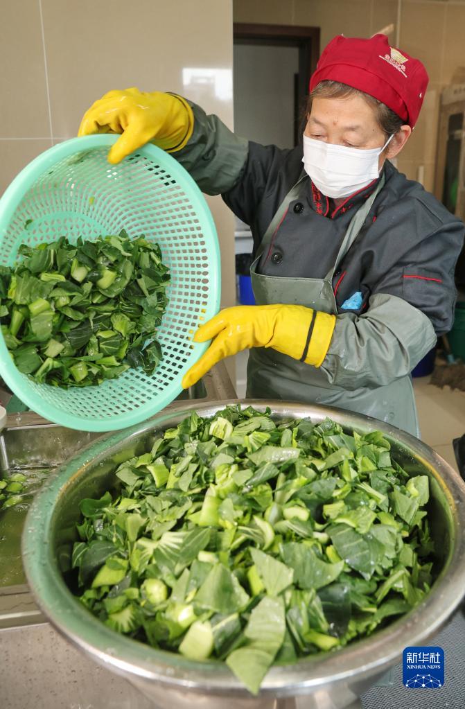 2月15日,鄰里紅餐廳服務(wù)員在準備食材。