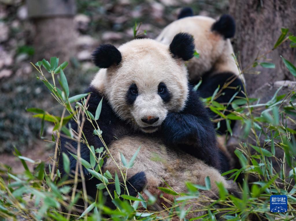 2月15日,在中國大熊貓保護研究中心都江堰基地,大熊貓在吃竹子。