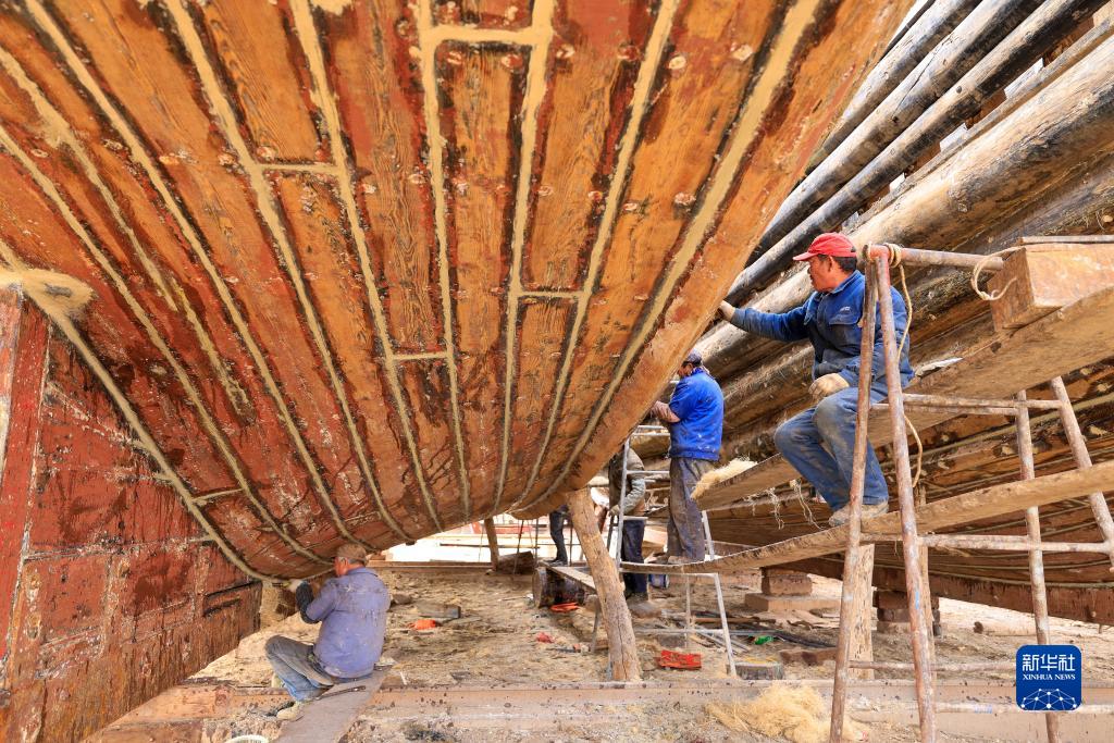 2月15日,在唐山市豐南區黑沿子漁港碼頭,漁民對漁船進(jìn)行維修保養。
