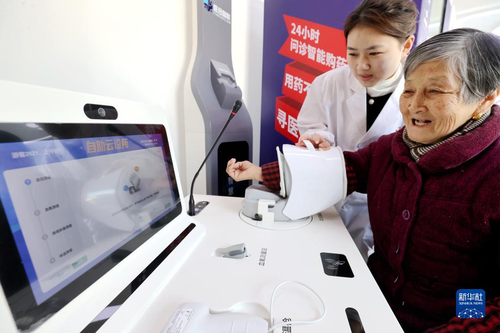 2月16日,在湖州市德清縣阜溪街道興山未來(lái)社區居家養老服務(wù)中心,家庭醫生輔助社區老人進(jìn)行云問(wèn)診。
