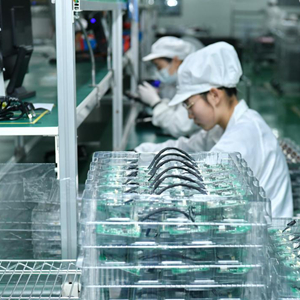 2月16日,在位于獻縣的滄州來(lái)福汽車(chē)照明集團LED車(chē)間,工人在LED電子照明模組生產(chǎn)線(xiàn)上工作。