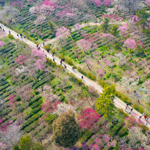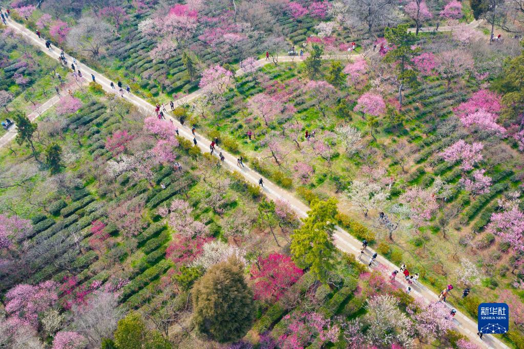 2月16日,游人在南京梅花山賞花(無(wú)人機照片)。