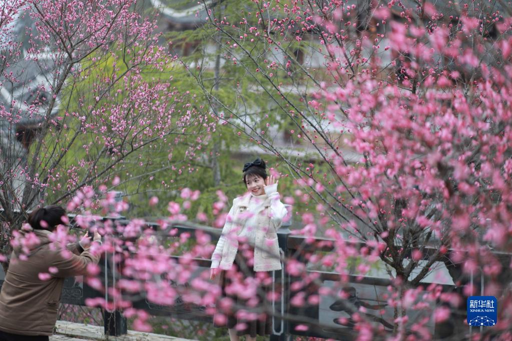 2月16日,游客在貴州省黔東南苗族侗族自治州劍河縣溫泉景區拍照游玩。